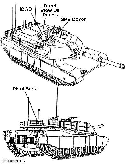 ▲M1A2改进方案中打算改用钛合金的部位,包括炮塔上的防爆泄压门,以及车体后部发动机盖等