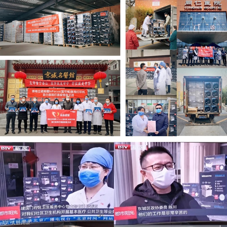 √ 联合富士康集团向北京市防疫抗疫一线医院机构捐赠医疗专用打印机,共捐赠了21所医院近2000台设备,总价值近400余万元。