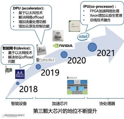 经过几年的发展,数据芯片(DPU/IPU)的地位一直在提升,正在成为“第三颗”大芯片。