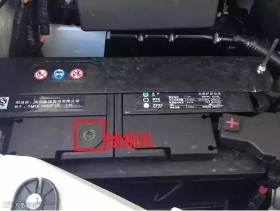 目前有超过80%的蓄电池中都带有电量检视孔,通过检视孔能看见三种颜色:蓝色代表电量充足,红色代表略微亏电,透明色则代表快报废了需要更换。