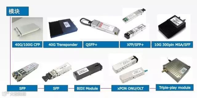 按照封装分:1×9、SFF、SFP、GBIC 、XFP、X2、XENPAK。