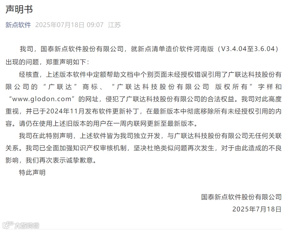 近日,广州知识产权法院就国泰新点软件股份有限公司(以下简称“国泰新点”)和金华某公司不正当竞争行为案件作出二审生效判决:维持一审判决,认定国泰新点实施了不正当竞争行为,要求国泰新点立即停止侵权及不正当竞争行为、赔偿损失,并要求其在官网和官方微信公众号刊登声明以消除侵权影响(判决书摘要附后)。