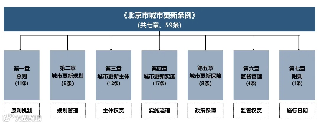 2021年起,北京市陆续出台多项政策文件,推进城市更新立法,形成城市更新“1+N+X”的政策体系,完成全市层面顶层设计。其中《北京市城市更新条例》的正式实施,是对城市更新专项规划、指导意见、行动计划的明确固化和归集。