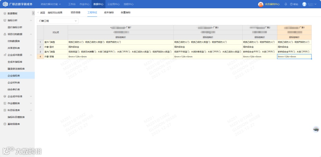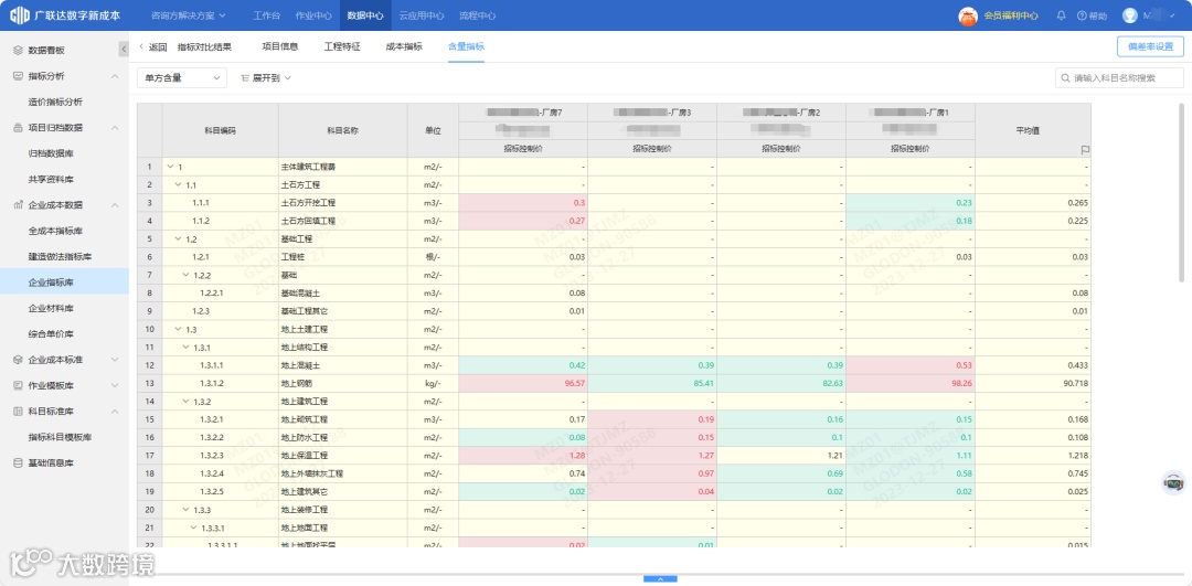 随着积累了部分项目指标项目后,在随后的指标调用中,通过按项目、业态、单体等不同维度及各专业项目特征筛选所需项目,并对同一类型项目在同一标准口径下进行指标的横向对比,如针对住宅的不同楼栋指标进行对比后找出差异部位,进而与相关单位沟通来规避项目建设风险。