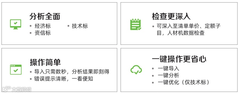 ①广联达清标软件支持多地区接口文件导入,且内置有各地评标细则,清标分析维度全面且专业,极大提高了工作效率和准确性。
