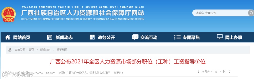 广西公布2021年全区人力资源市场部分职位(工种)工资指导价位