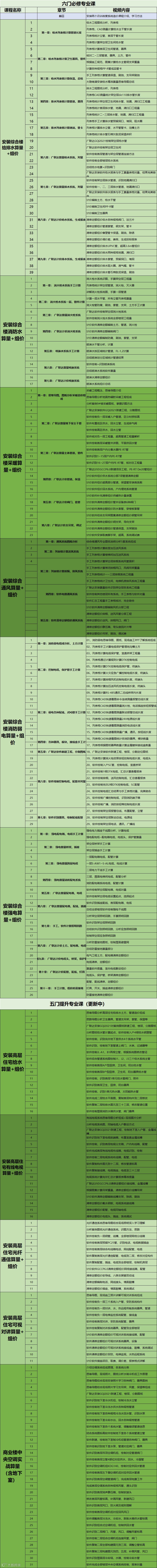 90小时内容+基础知识+施工图识图+定额+计量+清单软件实操, 全方位系统掌握安装给排水、消防水、喷淋水、采暖、强电、防雷接地、消防弱电、通风、建筑智能化、中央空调10大专业:
