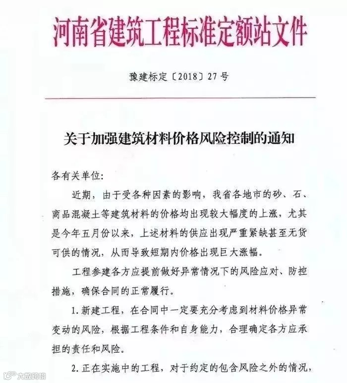 关于加强建筑材料价格风险管控的通知