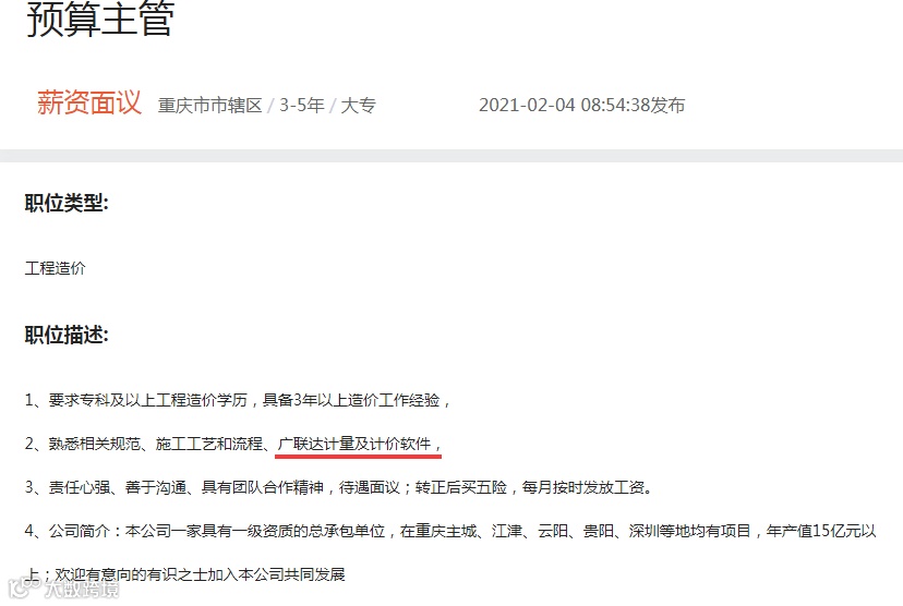 通过以上的招聘职位描述可以看到,作为造价员,掌握软件技能非常的有必要,然而广联达软件已成了当代造价员最需要掌握的能力之一。