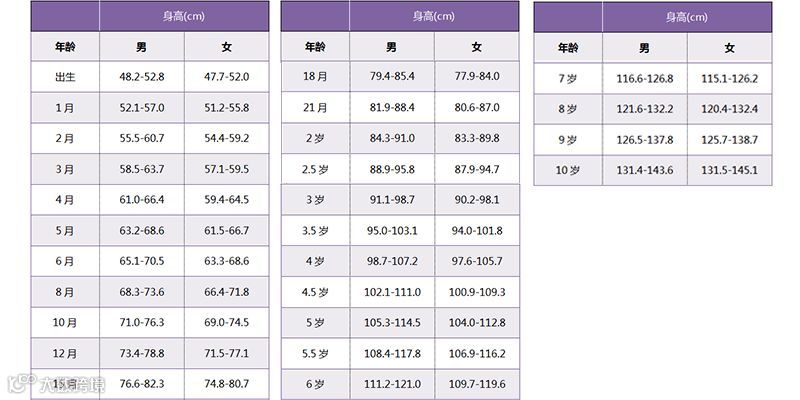 ● 现身高小于或等于上表中相应年龄的“正常身高最小值”时,提示可能存在影响生长发育的疾病。