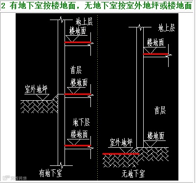 注意:楼地面、室外地坪或楼地面不区分有无地下室