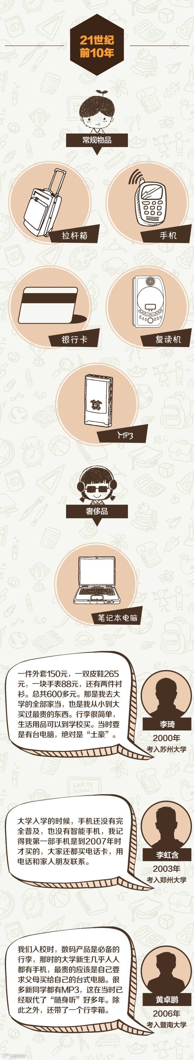 随着我国家庭经济情况的好转以及人们消费观念的转变,几乎每隔10年,上一个时代的大学生奢侈品就成了下一个时代学生们的“标配”。然而,对于大学新生,“入学行囊”还应根据自己家庭的经济水平,选择最适合的物品。如果你即将步入大学生活,不妨参考以下这些建议:
