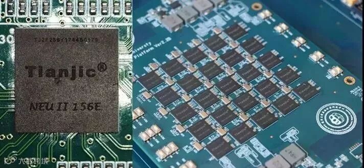 天机芯片单片(左)和5x5阵列扩展板(右)