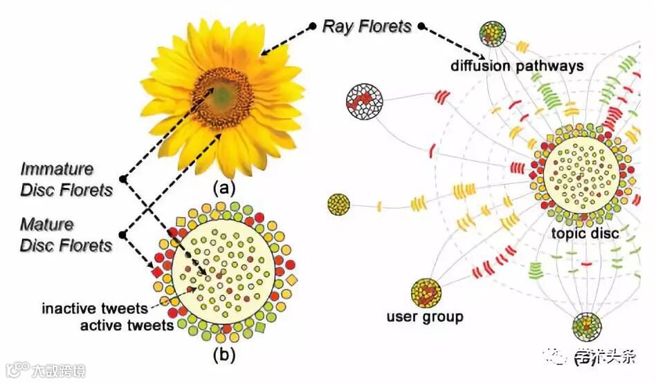 在信息扩散的可视化方法上,有不同的模型来描述信息在社交媒体上的传播,比如综合的多源驱动的异步扩散模型。往往直观地呈现出社会化媒体传播过程的三个主要特征,即时间趋势、社会空间范围和社区对某一兴趣话题的反应。 |