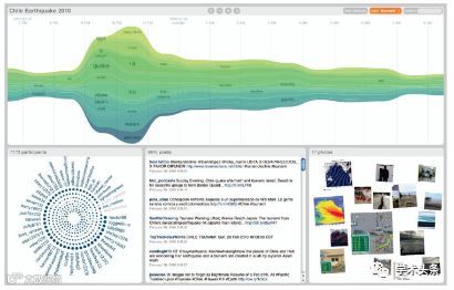 这种方法,用于跟踪和探索社交媒体上大型活动的在线对话。提供了从时间、主题、社交和图像方面对会话的可视化总结。可以灵活使用时间和空间过滤器,从社交媒体上海量的信息中获取自己想要的信息。 |