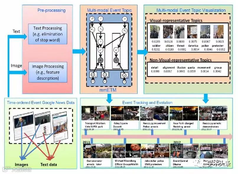 主题方法使用基于三个标准(视觉相关性、视觉连贯性和独特性)确定的代表性图像进行可视化。一个多模态框架,用于从多模态信息中检测主题,跟踪主题的演变,并随时间的变化使用文本和图像可视化主题。 |