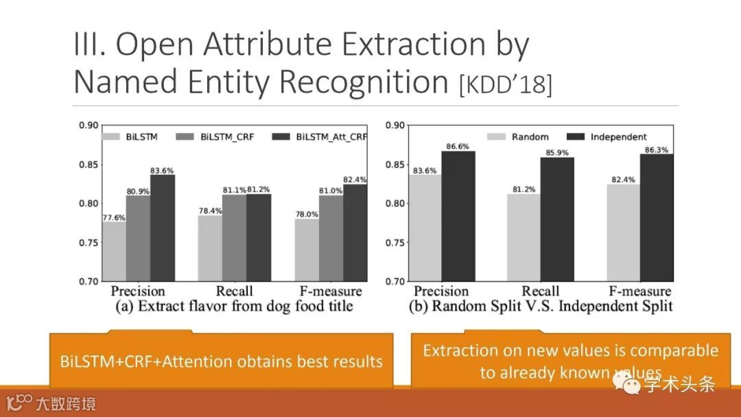 “Challenges and Innovations in Building a Product Knowledge Graph”是亚马逊Xin Luna Dong的邀请报告。KDD每年ADS Track都会专门邀请一些工业界的讲者来做报告。Luna在这个报告中主要讲了产品知识图谱构建的挑战,包括概念抽取、知识集成、重要知识概念发现以及如何结合用户的知识图谱。Luna以前在Google做过Google的知识图谱,目前在亚马逊负责知识图谱项目。
