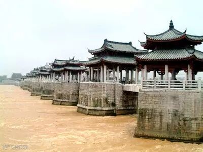 广济桥 位于广东潮洲东门外,是我国古代一座交通、商用综合性桥梁,也是世界上第一座开关活动式大石桥,有“一里长桥一里市”之说。