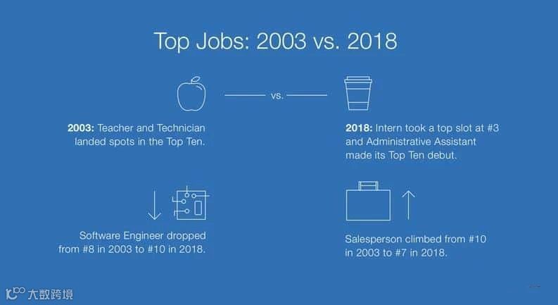 根据2018年最新的LinkedIn数据,在自动驾驶行业所有发布的岗位中,实习生的数量排到了第三名,远超第十名的软件工程师。