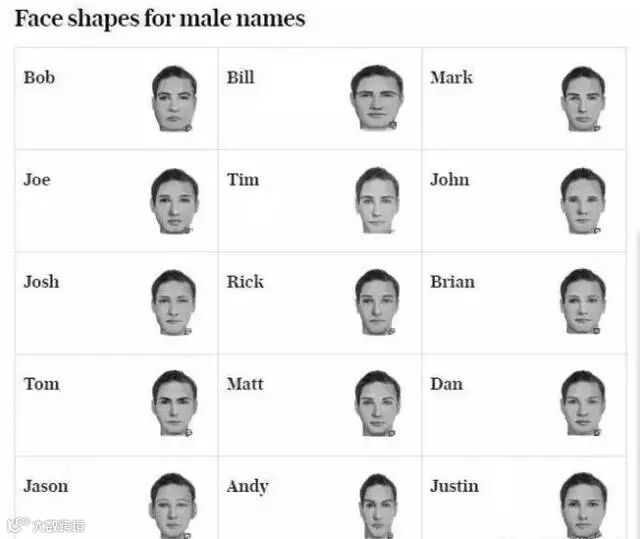 他们还利用电脑技术绘制出了不同名字的人的平均脸型,每个名字都会带来差异极大的脸。