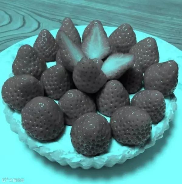 是啊,草莓并不是红的,这是黑白图片!然而尽管照片里没有红色像素,却会让人感觉有红色?