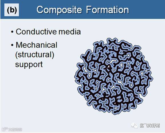 大体上,最成功的方法是构造一种碳复合材料。在其中的合金粒子尺度足够小,力学稳定性好,电子输运性能好。由于电极里给锂的扩散留有通道,锂离子输运性能也好。