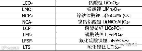通过这些表,读者一方面可以自由组合正负极,先从理论上估计电池的电动势、电容量和能量密度;另一方面可以根据电极材料选择合适的电解液、添加剂和集电器。图中字母缩写分别代表: