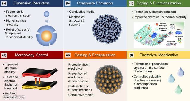 克服传导性差的关键在于缩短反应中电子和离子的移动路程,纳米尺度材料粒子的合成能够达到这个效果。