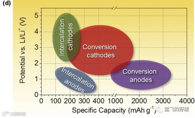 在锂空气电池中氧气也是一种B类转化型材料,但是气态意味着根本性的技术障碍,而企图利用环境中的空气还会引入系统层面的难题,因此下面不讨论锂空气电池。