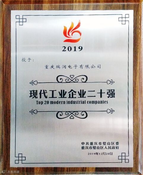 2019年12月20日,重庆市璧山区区委、区政府对48家为全区经济社会发展做出积极贡献的优秀企业进行了表彰,以进一步提振企业发展信心,推动实体经济发展迈上新台阶。其中,得润电子旗下重庆瑞润电子有限公司入选优秀现代工业企业,被授予“现代工业企业20强”称号,得润电子副总裁、重庆瑞润总经理朱春海出席颁奖仪式并发表获奖感言。