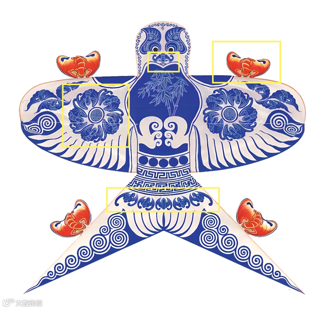 此外,曹氏风筝的独特之处,还在于风筝上布满的纹样。如蝙蝠、蝴蝶、牡丹、蝴蝶、鱼等吉祥图案,这些纹样并非装饰之物,而是寓意的载体。