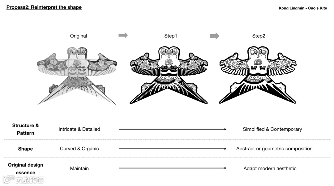 设计方法上,设计团队首先进行了曹氏风筝资料的数字化建档,将珍贵的传统工艺知识转化为可持续使用的数字资产。接着,建立了风筝的结构轮廓,提炼出核心纹样元素,在保留其文化精髓的基础上,进行了现代造型设计的创新。