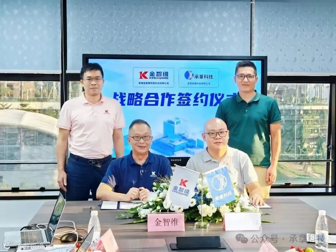 2024年9月10日,珠海金智维信息科技有限公司与承章科技于金智维总部正式签署战略合作协议,宣布共同成立“金智维·承章创新实验室”,以技术创新引领行业的未来发展,并通过市场推广和商业化落地,逐步将更多的科研成果应用到实际业务中。