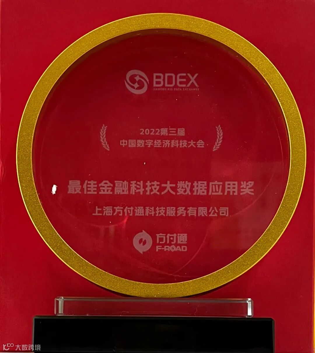 方付通从千余家参选企业中脱颖而出,荣膺2022第三届数字经济科技大会“最佳金融科技大数据应用”奖。获此殊荣代表,组委会和社会各界对公司多年来在科技创新领域研发力和服务力的高度认可。