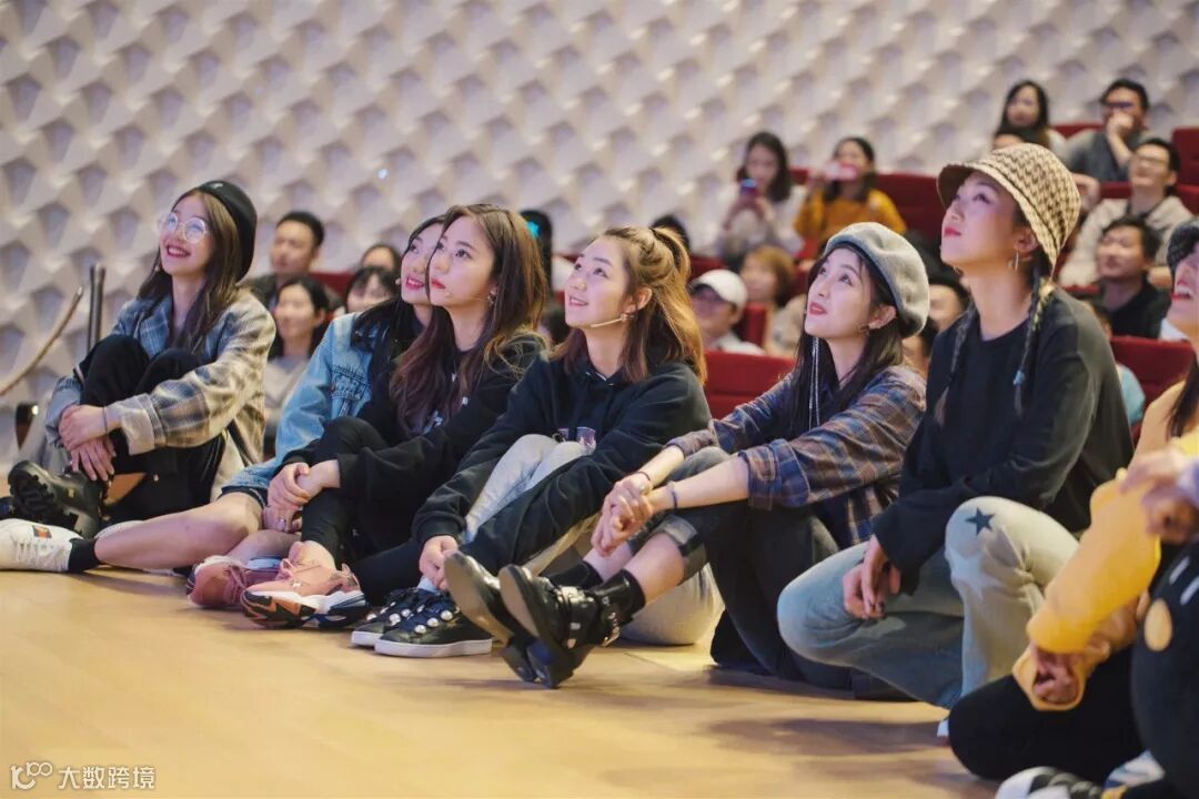 舞台上,小姐姐们盘腿席地而坐,身后,是一直关注和支持她们的鹅厂同学。