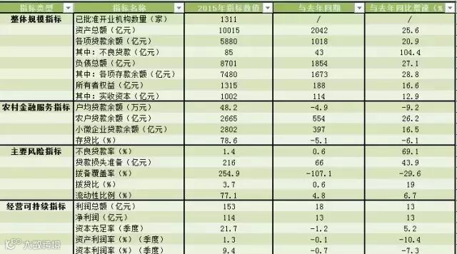 据最新统计数据,截至2015年末,我国已批准开业村镇银行1311家,资产总额10015亿元,各项存款余额7480亿元,贷款余额5880亿元,存贷比78.6%。当年实现利润153亿元,拨备覆盖率254.90%,资本充足率21.7%,不良贷款率1.4%。