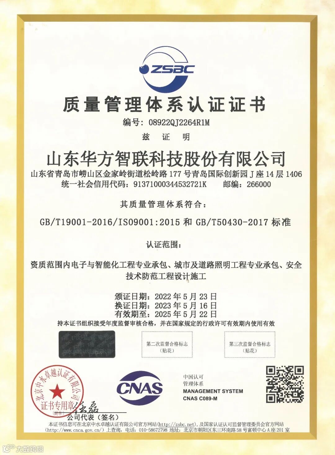 近期,经权威评审机构认证审查,一致认定山东华方智联科技股份有限公司满足2023年度ISO9001:2015质量管理体系认证、IS045001:2018职业健康安全管理体系认证以及IS014001:2015环境管理体系认证的标准要求,顺利通过换证审核,这标志着公司在精细化、制度化、信息安全管理、信息服务规范化管理方面保持着较高水平,在提升企业综合业务管理水平上取得了新进展。