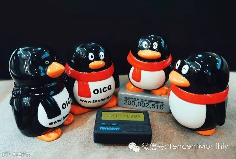 Pony展示礼物的时候说,最早的瘦企鹅OICQ的原版已经找不回来,这一套纪念版也很有意义,四个高矮胖瘦的陶瓷企鹅,纪念的是公司发展的几个重要阶段。中间的寻呼机可不是真的寻呼机,而是一个复古的U盘。为什么做成寻呼机的样子?听说QQ最早的提示音就是Pony从他的摩托罗拉寻呼机上录下来的。