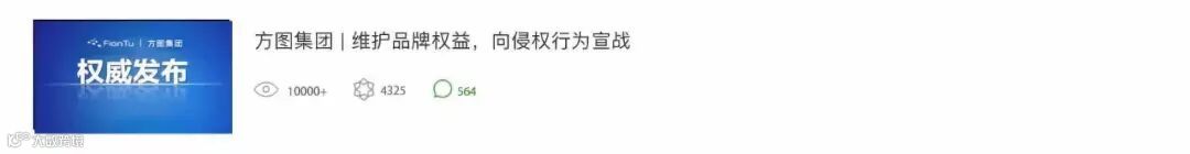 某日,方图集团官方微信发布一篇关于“ 维护品牌权益,向侵权行为宣战”文章。