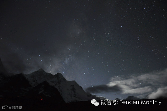 照片描述:比起星轨,繁星满天的夜空也令人感动。只有那样高的地方,才有这样美的星空。梦幻般,没有现实感。