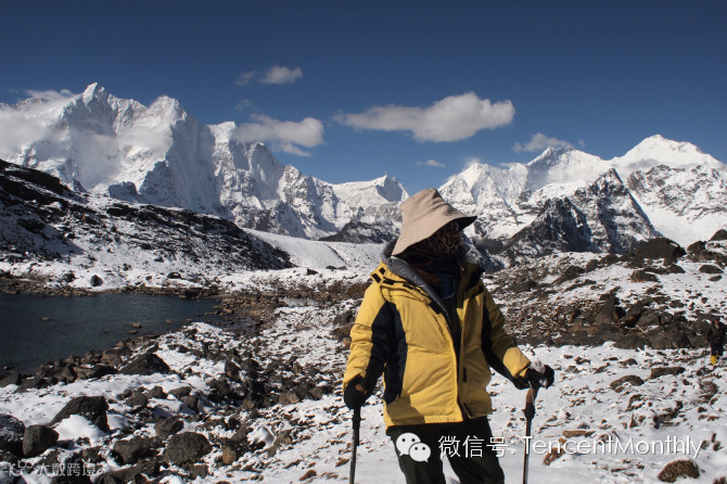 好在按原计划扎营了两天,第二天,雪雾迷离,目不能视,在帐篷里嗑瓜子,吹水,自助抖动取暖一天。有三位体力派的队友下去谷底,希望能朝珠峰东坡大本营更近一步(之前那个大本营,是珠峰北坡大本营)。从南北坡登顶珠峰的,已经超过5000人次,而有幸从东坡登顶的登山者,至今不超过30人,可见其艰辛。沿卓穷冰川进入珠峰的最腹地,路上能远眺马卡鲁峰的北坡大本营,这里没有人烟,连牧民都没有。每前进一步,都是新鲜且荣耀的。