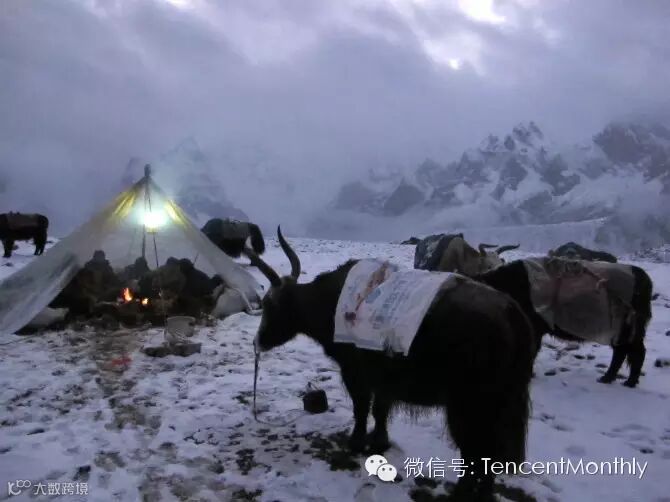 藏民牦牛工马夫,就挤在薄薄的一层塑料布搭起的三角帐里,生火取暖。睡觉也是在里面,褥子全是潮的。他们耐高寒和疾苦的能力,跟我们完全不在一个物种上。