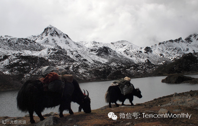 照片描述:牦牛们背负的是我们赖以生活生存的用具、食物、燃料。