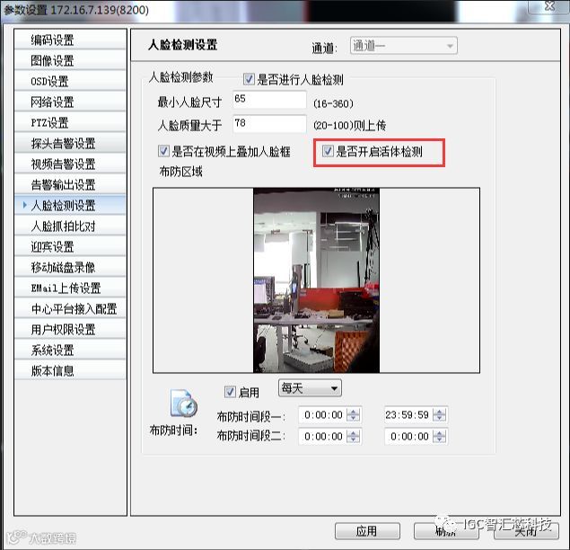设置步骤:使用IVS管理软件将人脸终端连接,右键选择视频预览界面,进入远程设置》人脸检测设置》是否开启活体检测设置(设备默认勾选状态)。