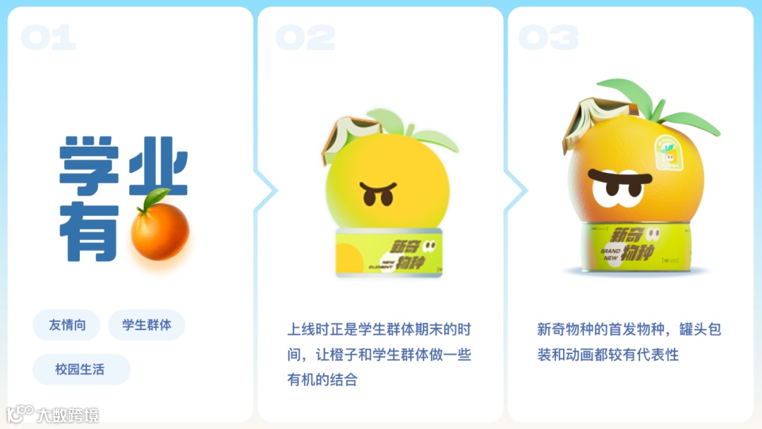 作为新奇物种的首发物种,也是给整个项目定下基调。上线时正值校园临近期末的时期,我们让水果和学生群体做一些有机的结合。