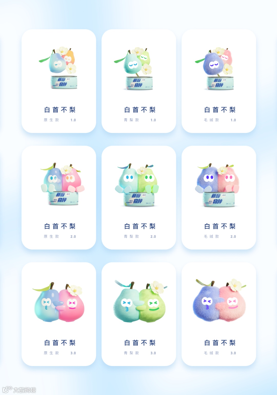 在规划物种时,我们加入了很多年轻人的梗文化,在第一期规划的蔬菜水果系列之中我们选择了「不梨不弃」,「好柿成双」,「学业有橙」,「苹安喜乐」,「没有蕉虑」……融合谐音梗,且是正向反馈的物种规划。
