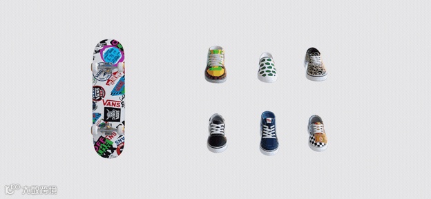 全片以OFF THE WALL动作负责「视觉线索」,avatar鞋款的花式变幻负责「个性全开」。怎样让VANS的灵魂的印花图案“灵动起来”是视觉上的处理难点。