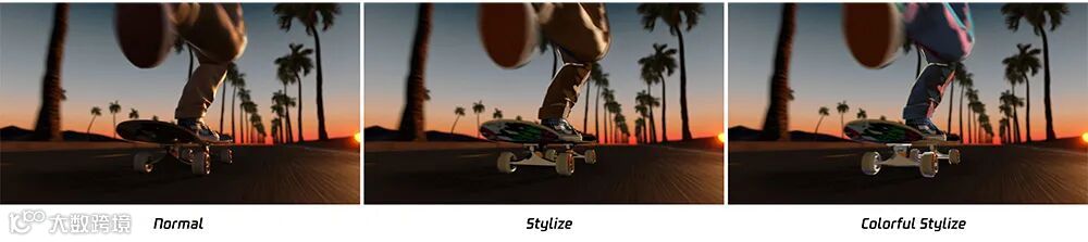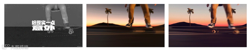 场景营造上,设计原型选用加利福尼亚洲的“圣莫尼卡海滩”风光,布光定格为落日余晖的光影效果,整体营造出复古时尚的滑板文化风格。