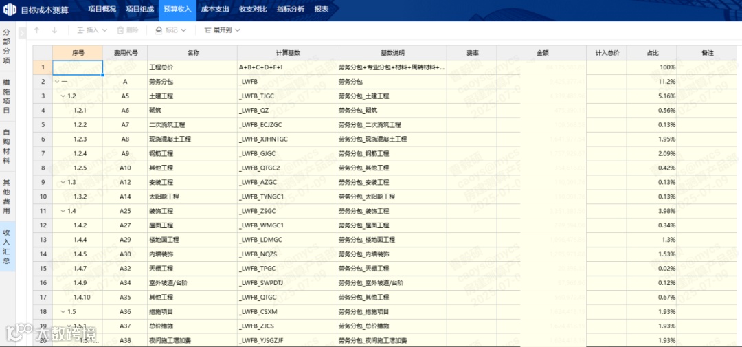 2024年,某产业园项目通过软件内详细的费用级和清单级收支对比,发现主体队伍脚手架及模板工程属于亏损项,锁定优化项逾百万,证明“标价分离”对于精细化成本管理具有非常重要的作用。