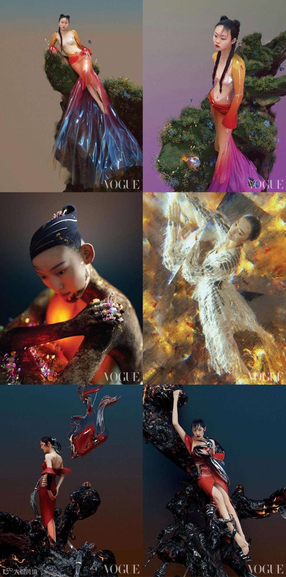 未来之境的概念,不是在说服饰的设计,也不是在讨论面料的质感。它在说,当一切趋于虚拟化,将会给穿搭带来怎样的一次变革?那可能是完全脱离过去服饰定义的全新境界,还有对美的颠覆性的定义,“未来的时装,是依然由布料织就,还是由画笔勾勒?是服务于现实,还是存在于虚拟?是依附于身体,还是成为身体本身?带着这些畅想,VOGUE特别以五位中国设计师的新季设计为灵感,结合传统五行理论,共同勾勒时装的明日世界。”
